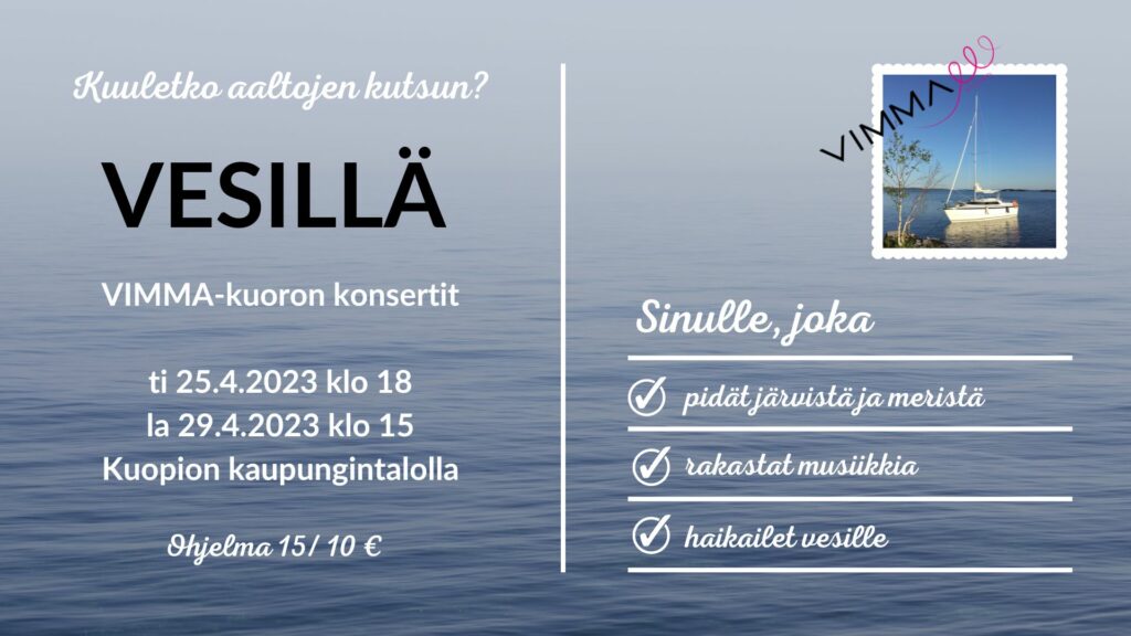 Maestran VIMMA-kuorossa pääset kehittämään laulutaitoasi ja nauttimaan yhdessä laulamisesta mainiossa seurassa. Tervetuloa tutustumiskäynnille!